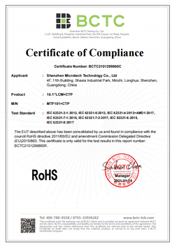 the device was packed very well and arrived without damages. no visible pxel errors. the high contrast of 1000 and the high viewing angle of 89° is clearly visible. the 10 point ilitek touchscreen works without errors. the entire device has no RoHs,REACH certification yet, but i hope the will be done, soon.